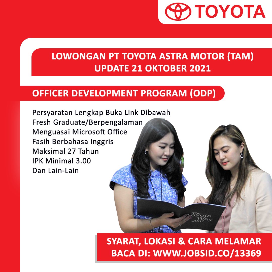Info Lowongan Kerja On Twitter Lowongan Officer Development Program Odp Pt Toyota Astra Motor Tam Fresh Graduate Berpengalaman Atpm Mobil Toyota Group Astra Syarat Lokasi Amp Cara Melamar Baca Di Https T Co Kavztp9i5f